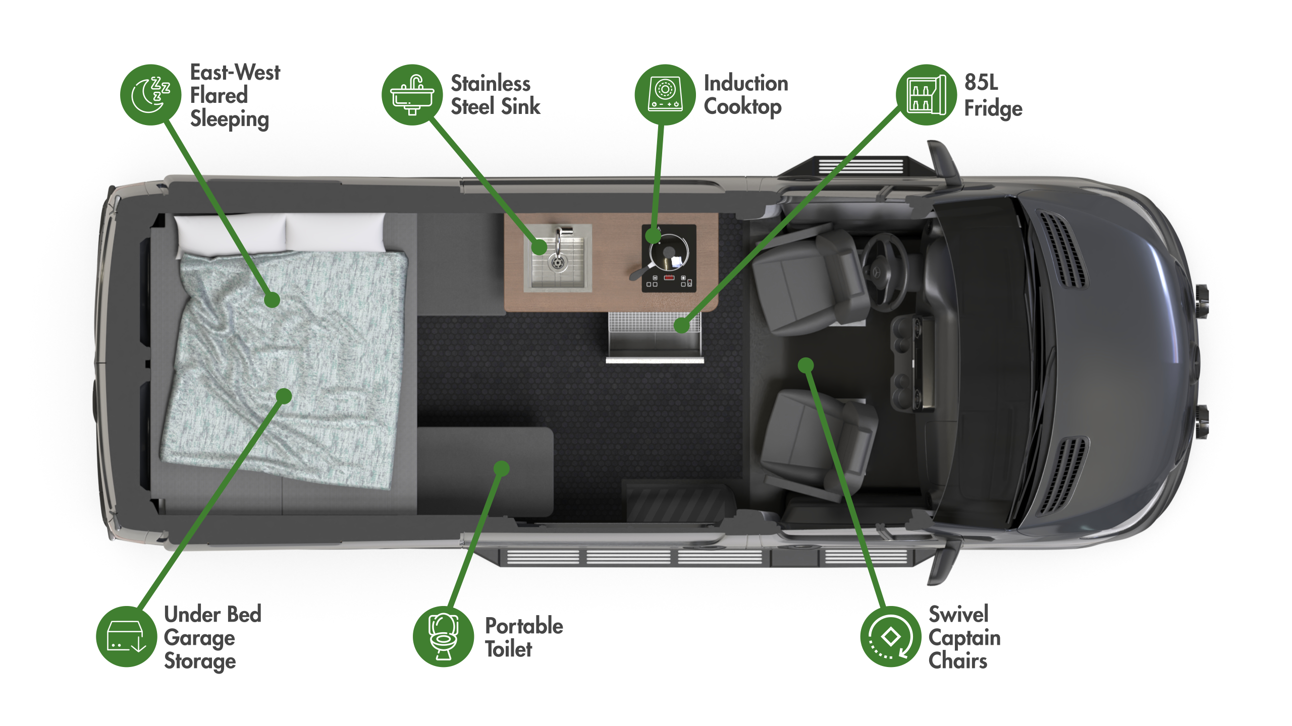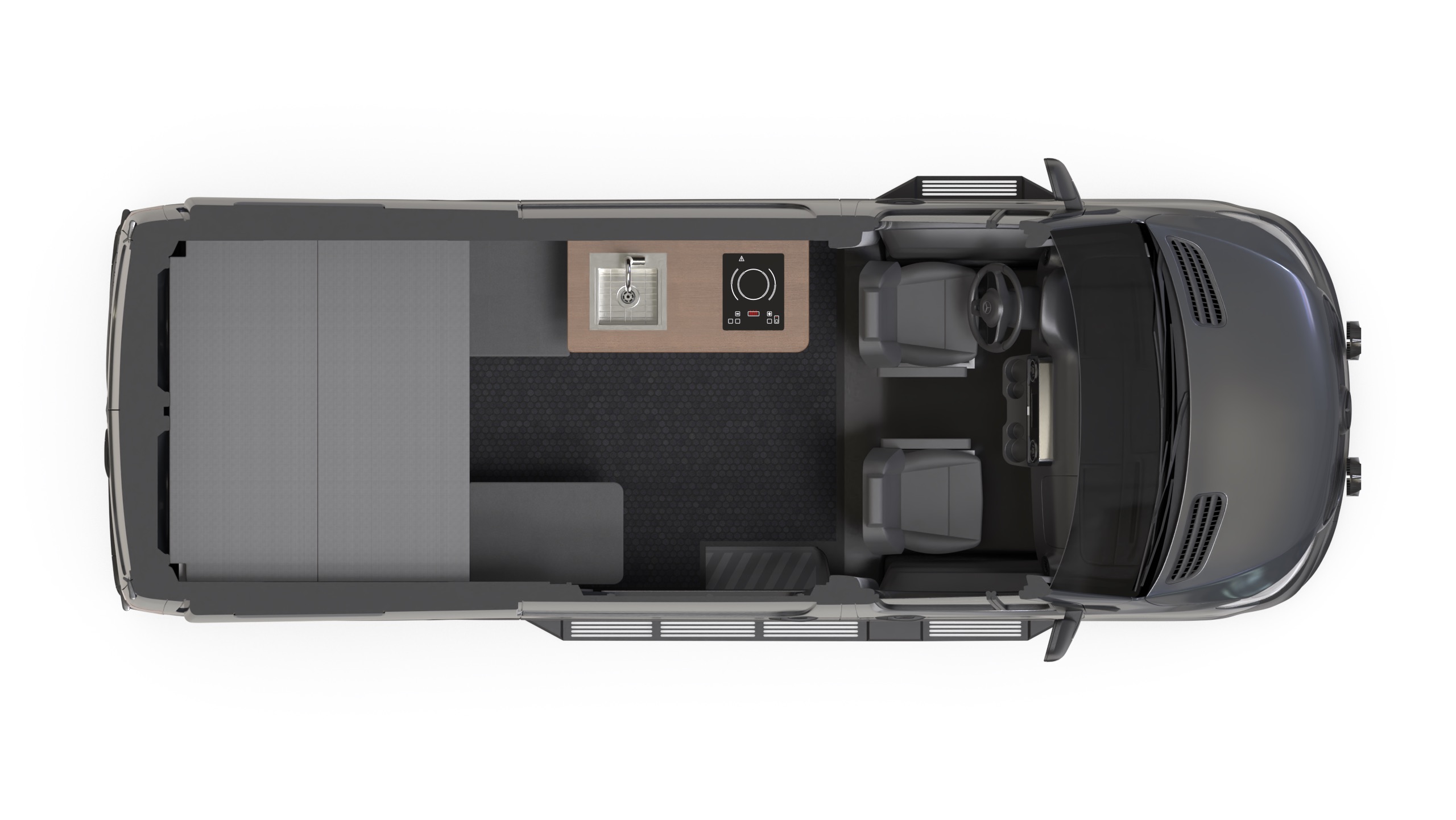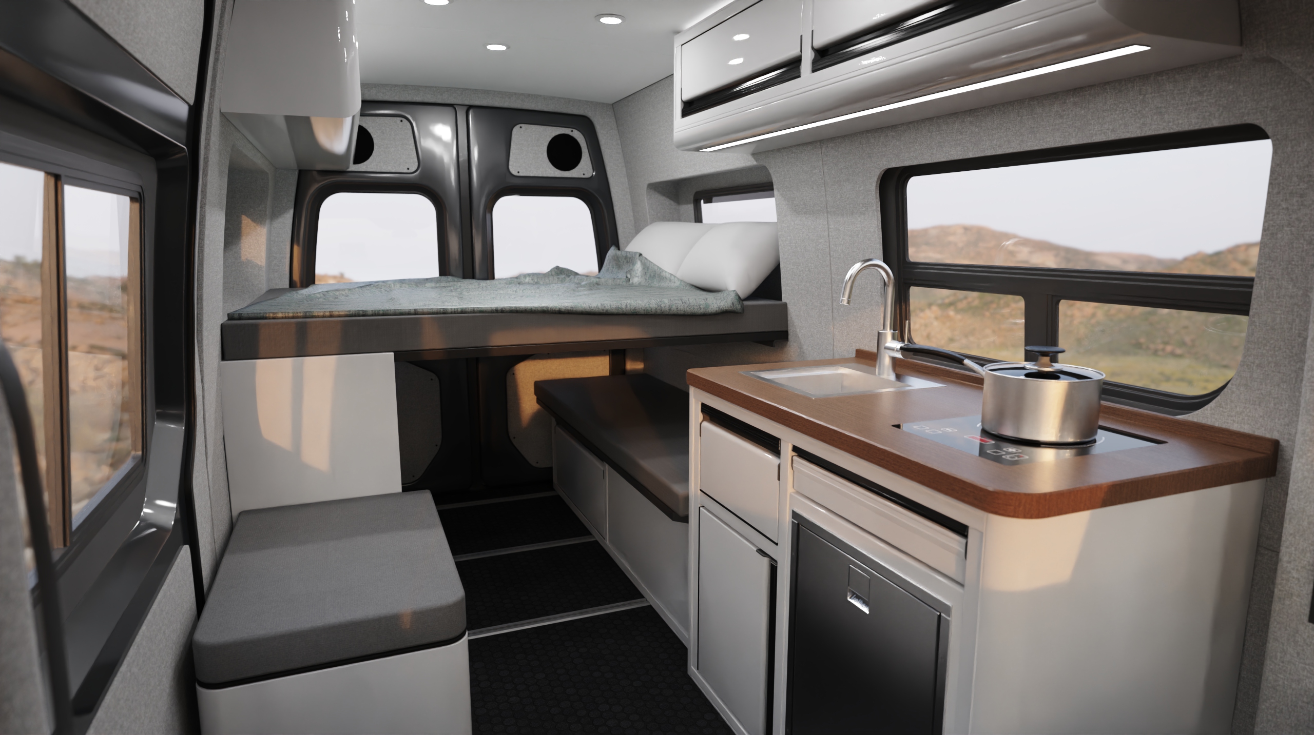 The Drifter is our most popular 144 design for 2 people. This design has been a staple in the TOURIG line for 4 years running for good reason. Hidden composting toilet and TOURIG portable shower maximize interior space and livability.