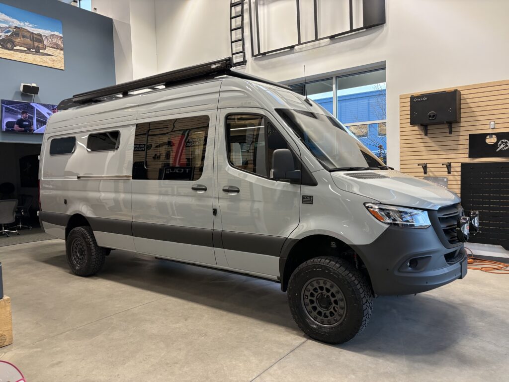 Every great build starts with the floor plan. This beautiful silver-grey Sprinter 170 is the perfect example of simple, refined, and purposeful design. Our iconic Banner layout has set the standard for a design that seats two, sleeps two, and includes a dedicated wet bath with shower. Generous countertop space. Abundant storage. An enormous garage.…