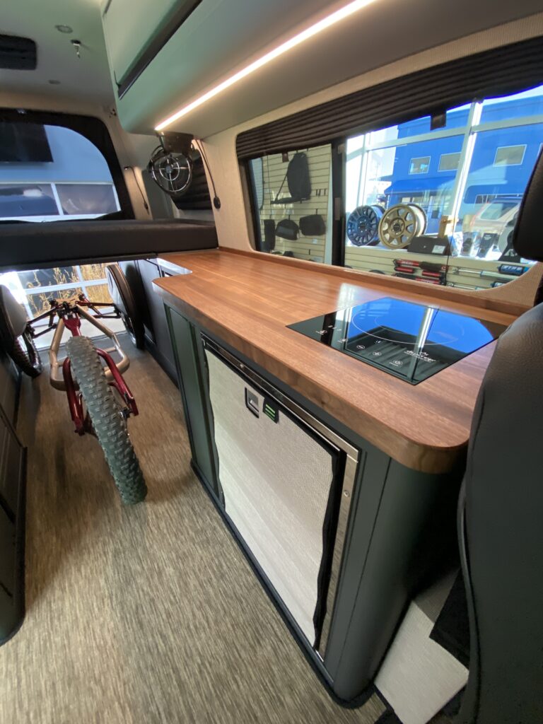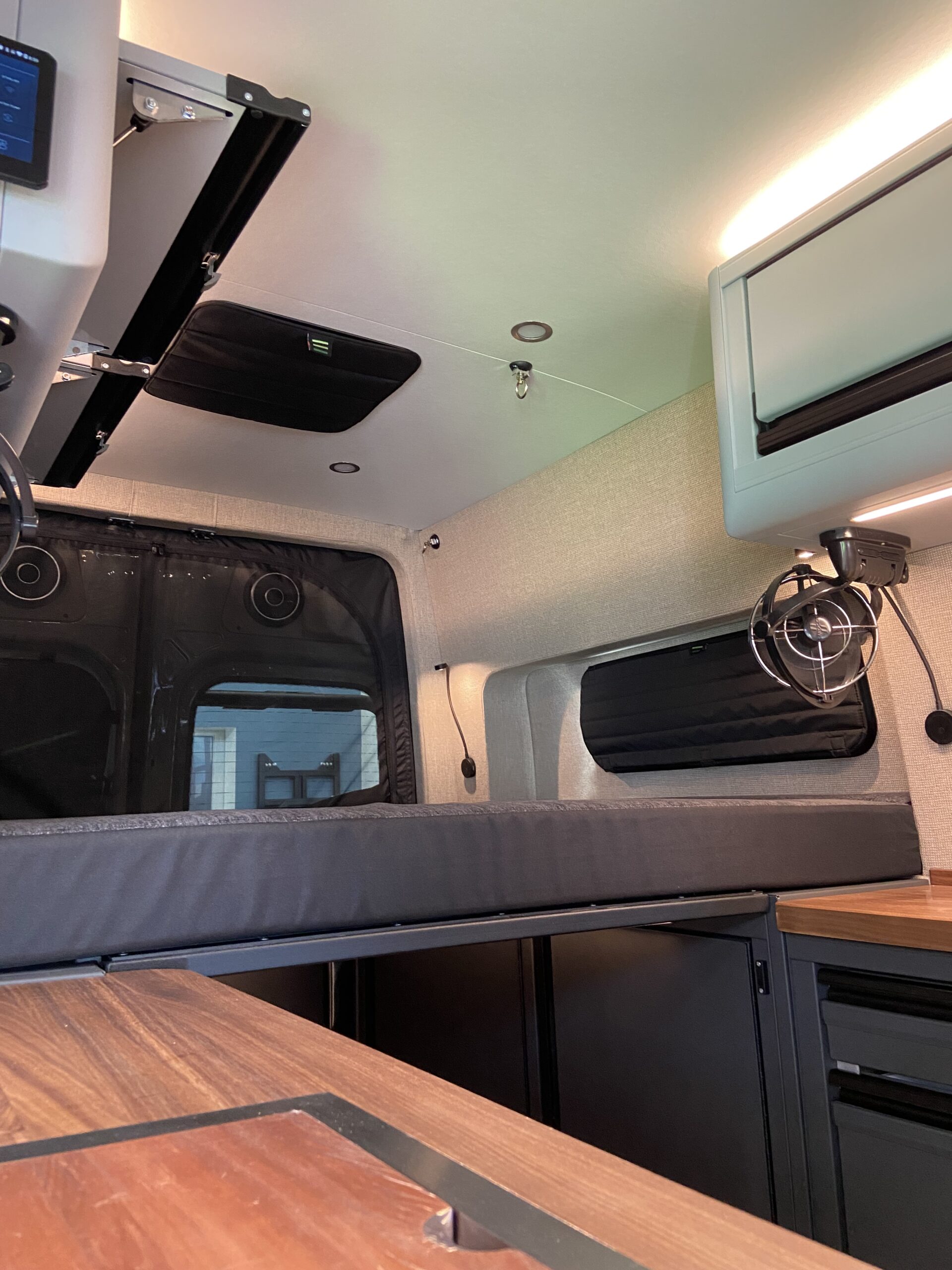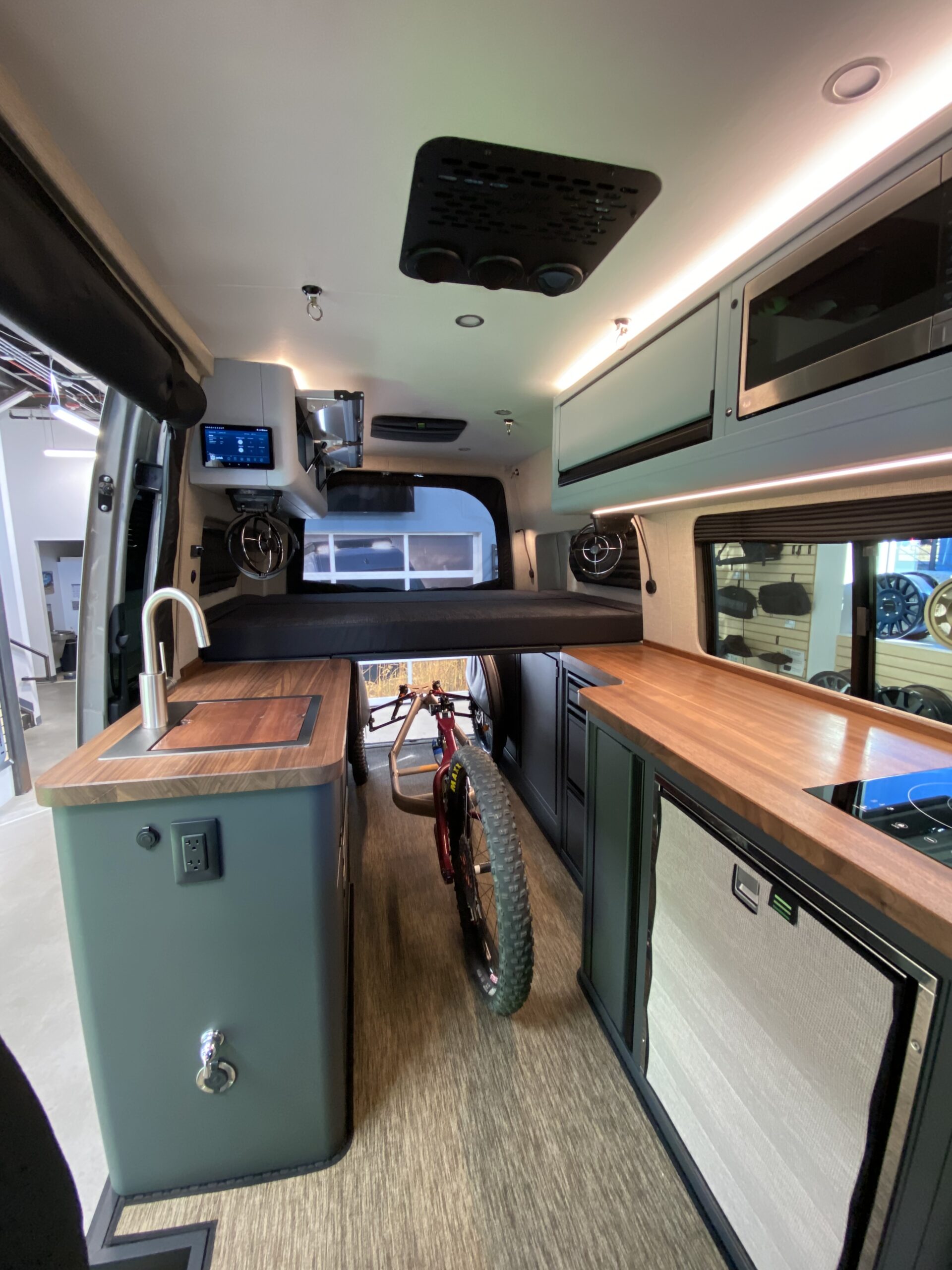 This owner didn’t want a trendy build meant to cruise the Strip and turn heads. He needed a van with a very specific purpose—one capable of withstanding demanding terrain, changing climates, and constant travel. From the specialized cabinetry layout to a massive lithium battery system, dual heating systems, and top-of-the-line air conditioning, this van was engineered to function at the highest level while remaining beautiful, warm, and deeply comfortable.